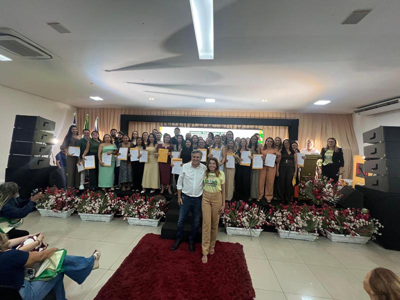 Logo após a formação da mesa, ocorreu a posse dos novos gestores das escolas municipais, realizada pelo prefeito ao lado da secretária de Educação, marcando um novo ciclo de liderança nas unidades de ensino da rede pública municipal.