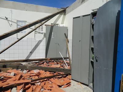 Segundo informações da diretora interina SandraBezerra, a SEDUC já foi comunicada sobre odesabamento e a empresa responsável pela obrajá está providênciando os reparos. A direção daescola frisou ainda que o teto do laboratóriotambém ameaça desabar a qualquer momento.