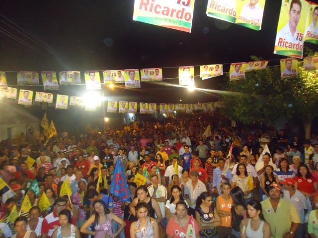 O candidato a prefeito de Santana do Piauí pela coligação “Unidos para Continuar avançando” formada pelos partidos PMDB-PSB, Ricardo José Gonçalves, reuniu uma multidão em comício realizado no povoado de Lagoa Seca na noite do último sábado (22/09). Este foi o terceiro comício da coligação que tem como marca registrada o grande comparecimento popular.